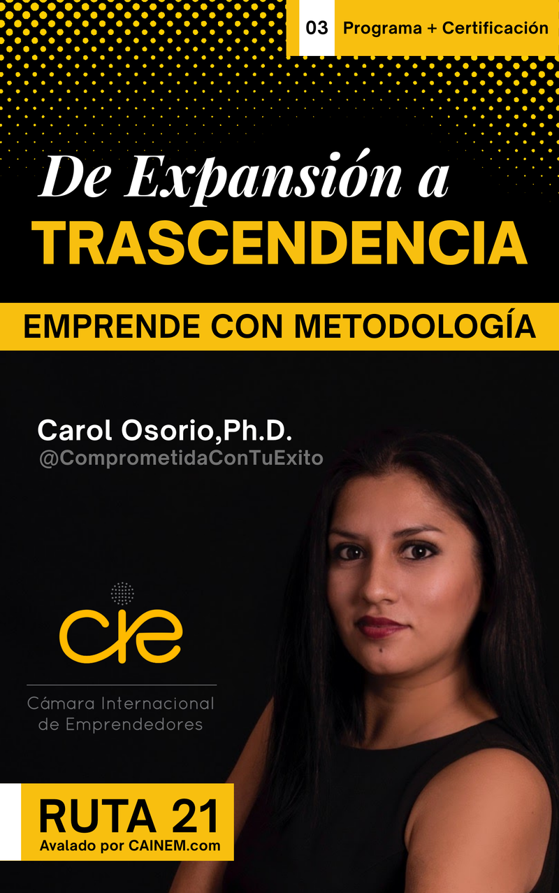 Saber másEl Programa: "De Expansión a Trascendencia: Emprende con Metodología" es el escalón !nal, el acompañamiento de!nitivo. Pensado para aquellos que buscan consolidar su liderazgo y dejar un legado duradero, este programa te ofrece una guía experta, metodología avanzada y una certi!cación que valida tu maestría, llevándote a la cima de la Ruta 21 y a la internacionalización de tu marca con propósito.